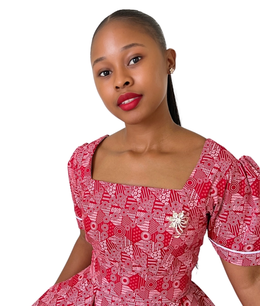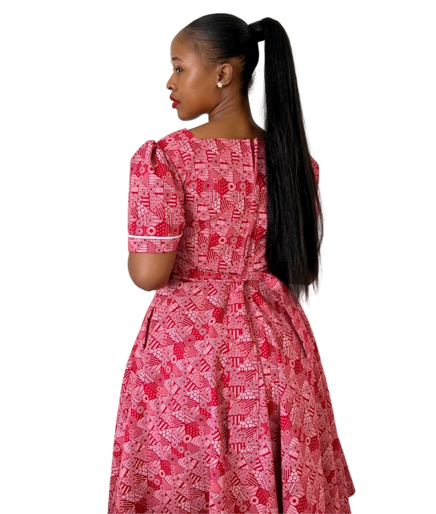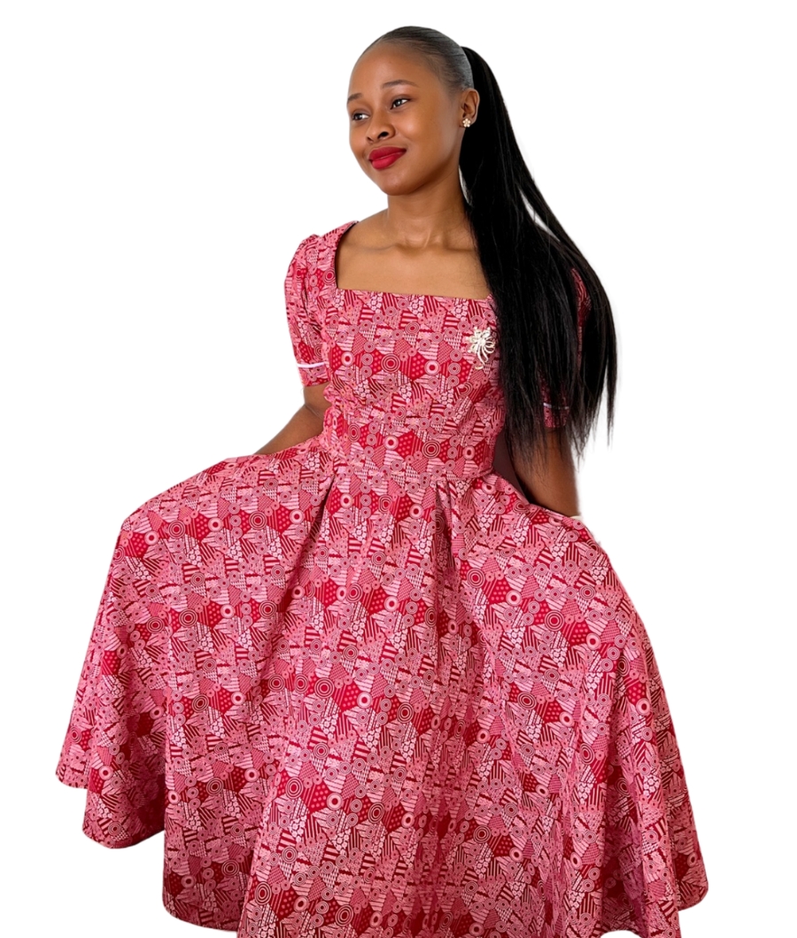 Nonkanyiso C dress comes with a belt and a doek. Available in different colours as well.