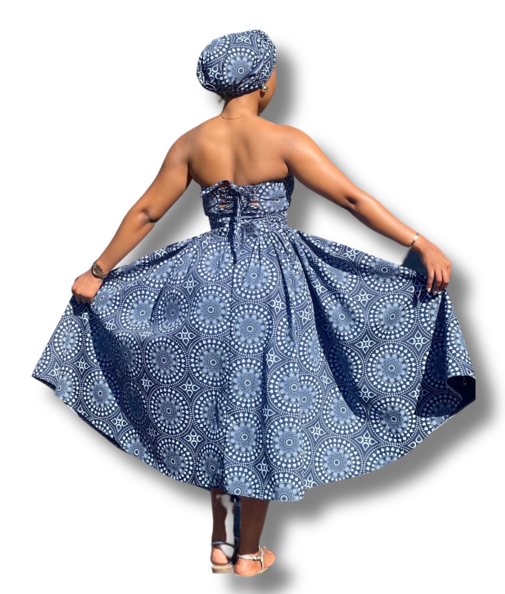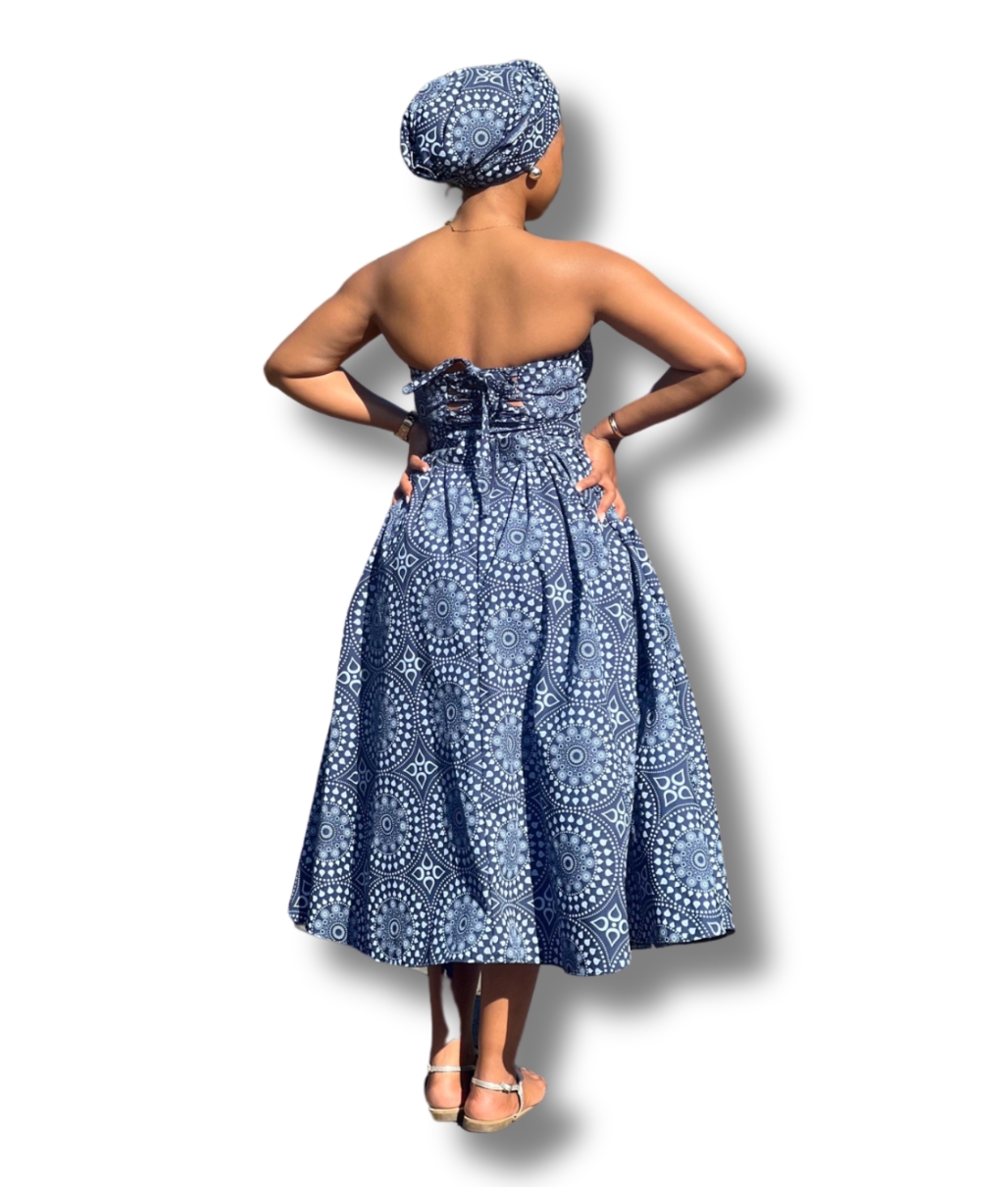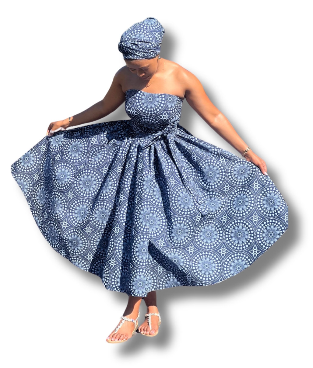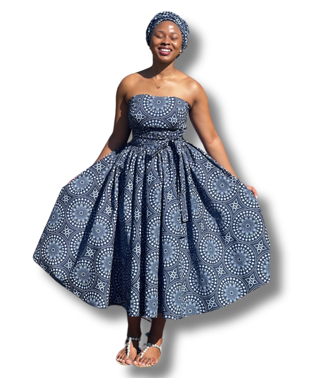 Sunrise blue three-piece dress comes with a belt and doek.  Available in different colours as well